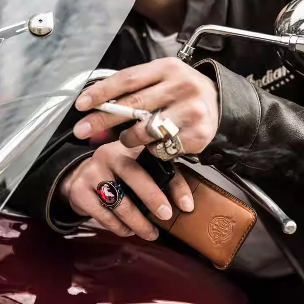 Crafted from full-grain vegetable-tanned cowhide, molded for a firm structure with rounded corners and hand-sewn saddle stitching for a solid, refined feel. The split-lid design opens smoothly, while the compact interior layout neatly holds about 10 cigarettes, providing effective protection against pressure and scratches.