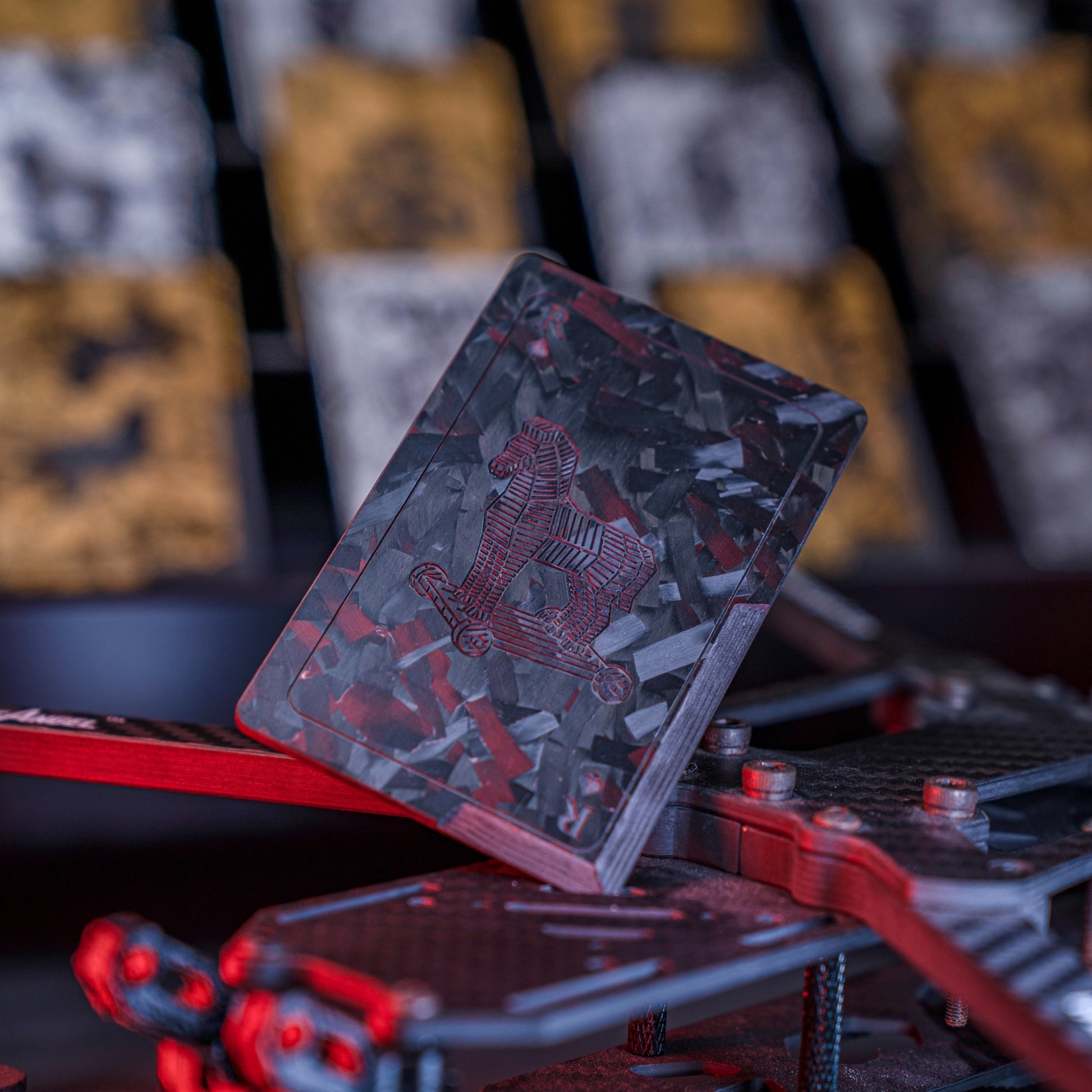 Combining striking carbon fiber material with unique artistic design, the RAKSASA & Extremely Premium LAB Knife Card Series showcases a strong sense of individuality and modernity. The three different surface patterns—Contour Lines, Thousand-Hand Skull, and Trojan Horse—imbue each card with a unique visual impact and symbolic meaning, representing the complexity of terrain, the eternity of death, and the symbol of wisdom, respectively. Each card is intricately engraved, with surface treatments displaying unparalleled attention to detail. Ideal for EDC enthusiasts and users seeking personalized gear, it combines functionality with unique artistic value.