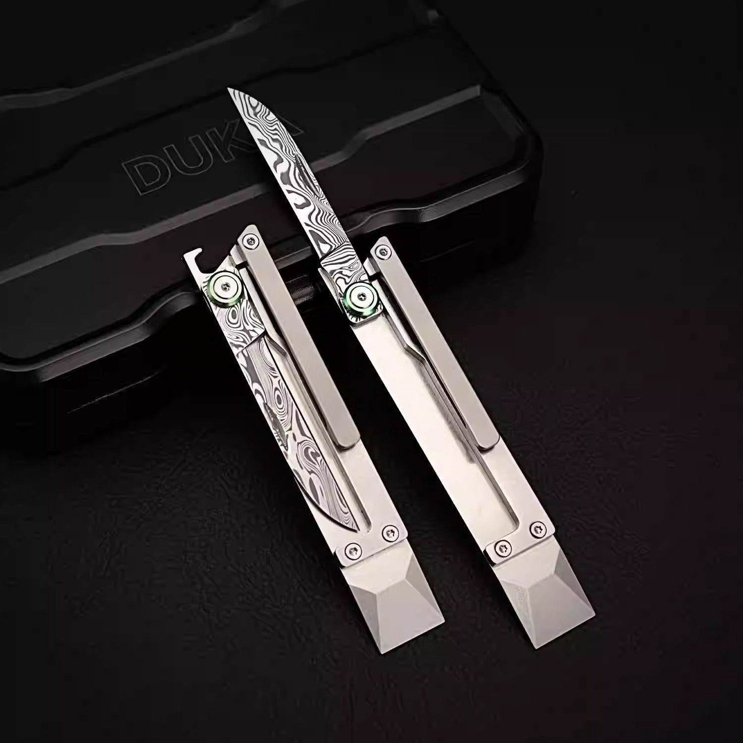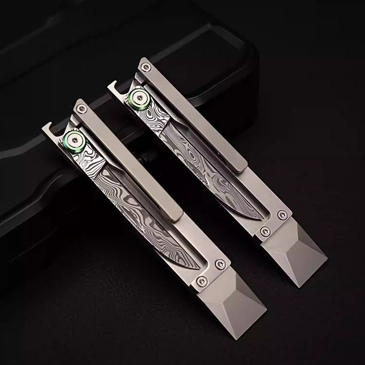 This multi-functional pry bar tool is crafted from powder metallurgy stainless steel, featuring a high-quality Swedish Damascus blade. Designed for daily carry (EDC), it includes a bottle opener and boasts excellent rust resistance. Its ergonomic handle provides a secure grip, making it an ideal tool for outdoor and everyday tasks. The Damascus steel blade offers both strength and visual appeal, with intricate patterns enhancing its overall aesthetic. Perfect for adventurers and utility tool enthusiasts, it combines practicality and style in one compact, durable package.